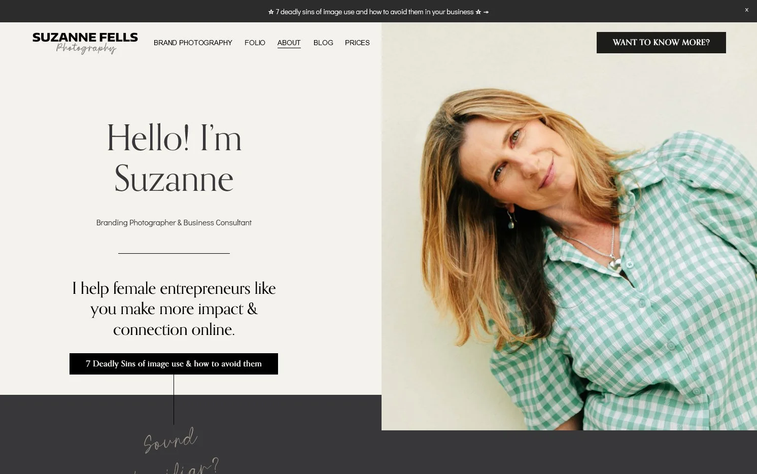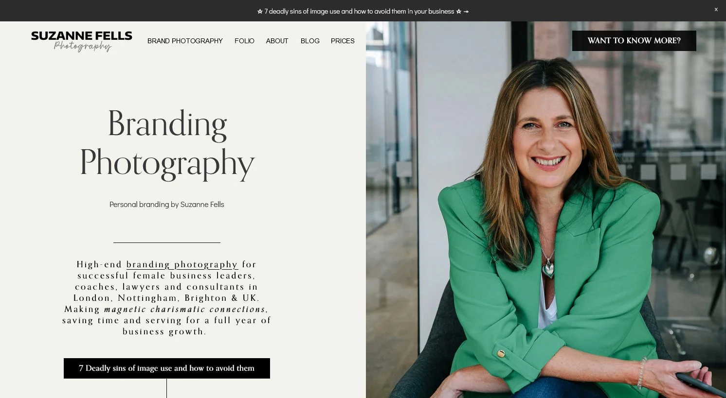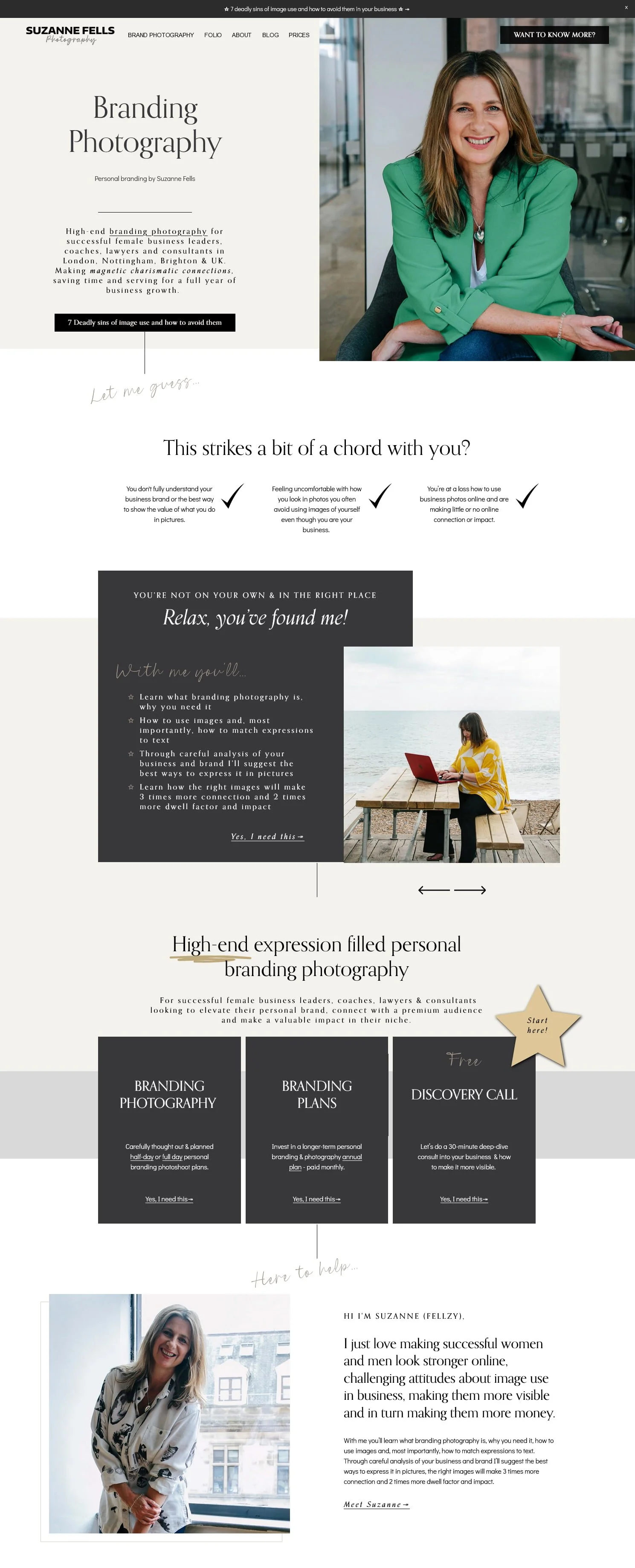 Brand Photography website for Suzanne Fells - Home page